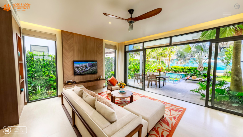 Angsana Residences Hồ Tràm là khu biệt thự nghỉ dưỡng ven biển cao cấp, được thiết kế tinh tế và hiện đại, mang đậm hơi thở thiên nhiên Hồ Tràm. Với VR tour, du khách có thể trải nghiệm toàn bộ khu vực nghỉ dưỡng từ những căn biệt thự sang trọng với tầm nhìn ra biển đến các tiện ích đẳng cấp như hồ bơi riêng, spa, và nhà hàng. Trải nghiệm ảo này giúp khách hàng cảm nhận chân thực về không gian nghỉ dưỡng lý tưởng mà không cần trực tiếp tới khu nghỉ dưỡng.